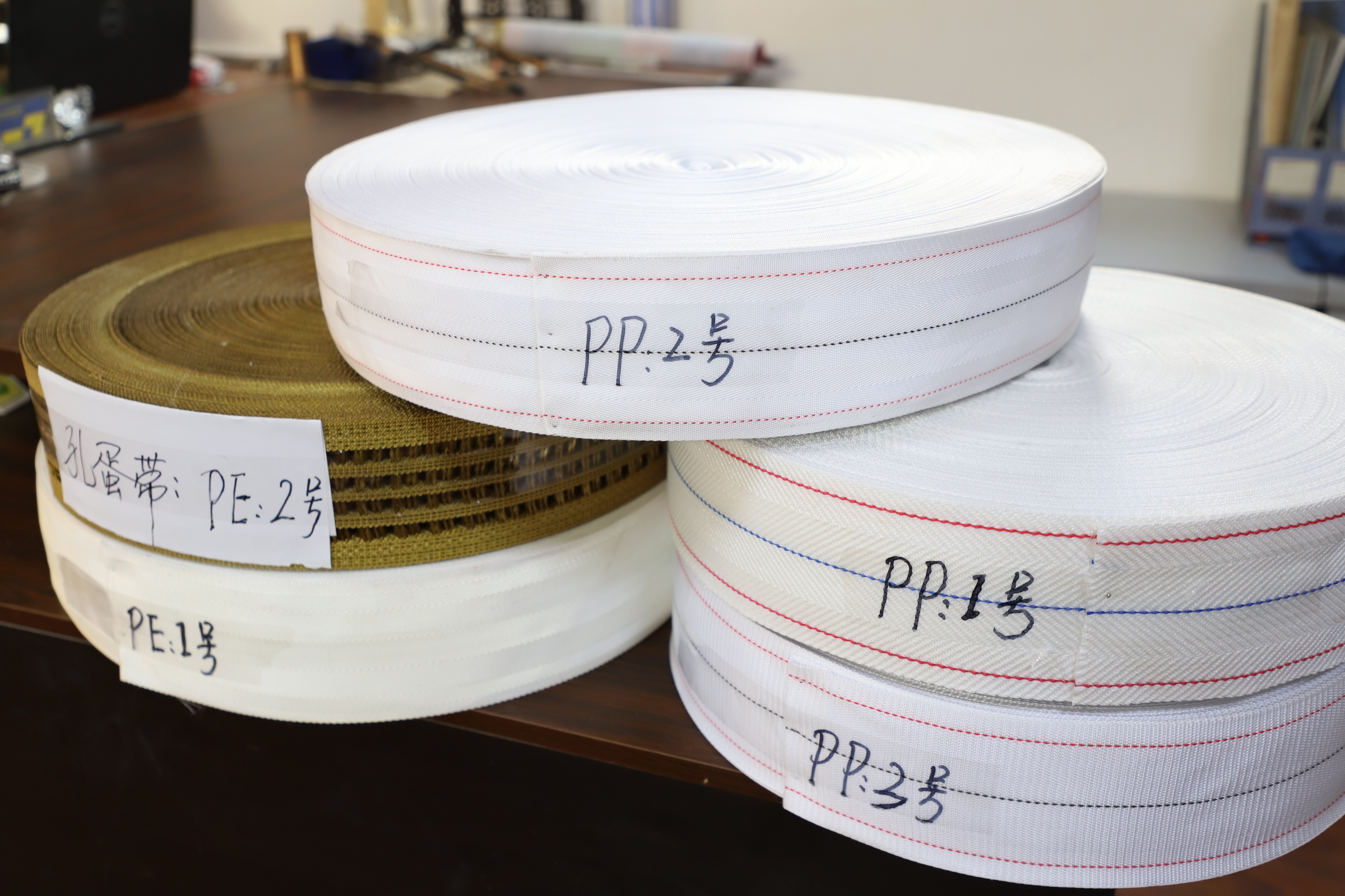 常規規格:寬度:100mm, 長(cháng)度根據要求定制。顏色為白色底色,中間一條藍色線(xiàn),兩邊可加紅色線(xiàn)。